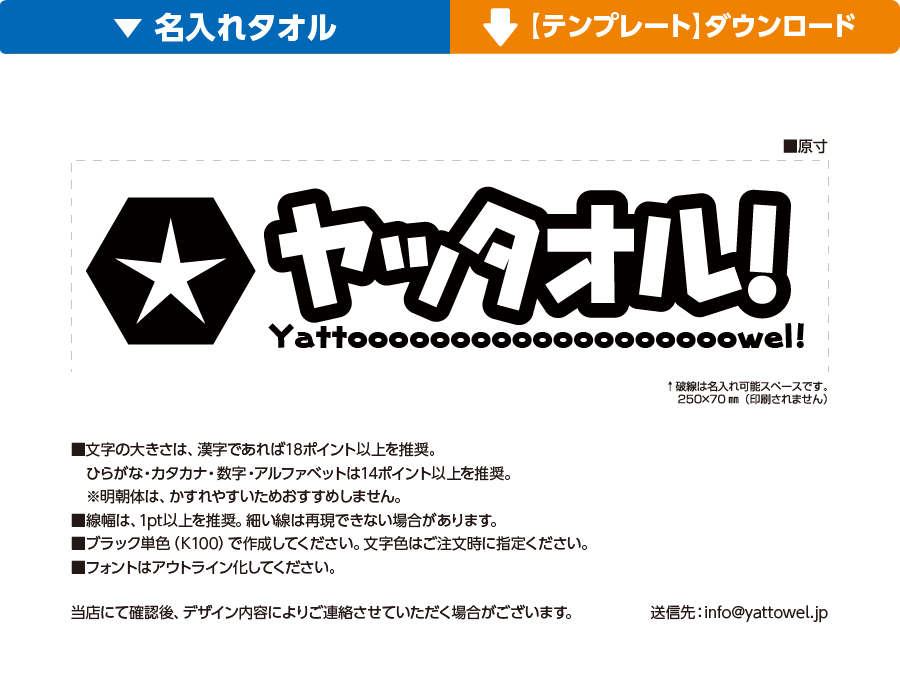 また、カラータオルの場合はタオルの地色にインク色が混ざるため、タオルの地色ごとに使えない文字色がございます。